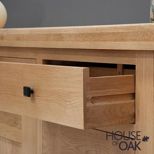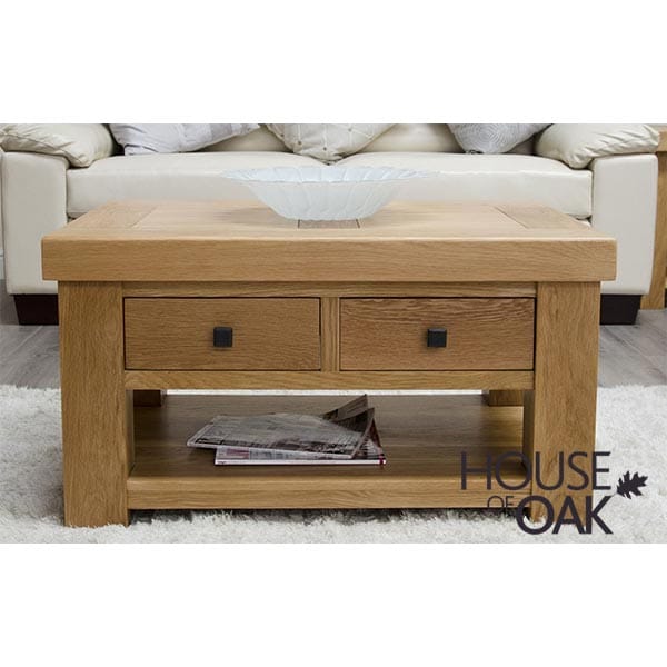 Our Bordeaux Oak 3ft X 2ft Coffee Table with Drawers is the perfect storage solution for those who are looking for a smaller coffee table to add to their home and living space. Its spacious surface is made from quality oak veneer panelling surrounded by a top-quality American White Oak sturdy frame to ensure robustness and durability.