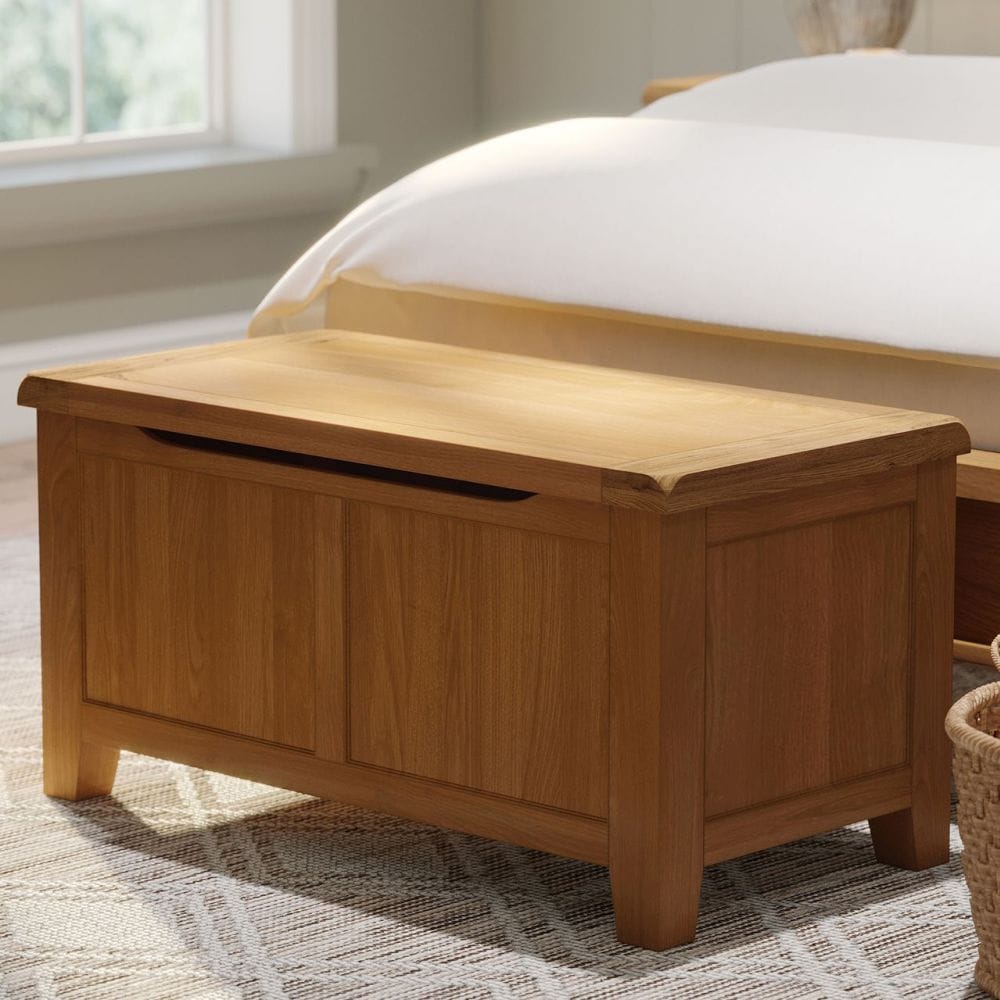 The Canterbury Oak Blanket Box is a practical and beautifully built storage piece that suits bedrooms, hallway spaces or living rooms. With generous internal space, it is perfect for storing extra bedding, throws or cushions while keeping your home looking tidy and well presented.