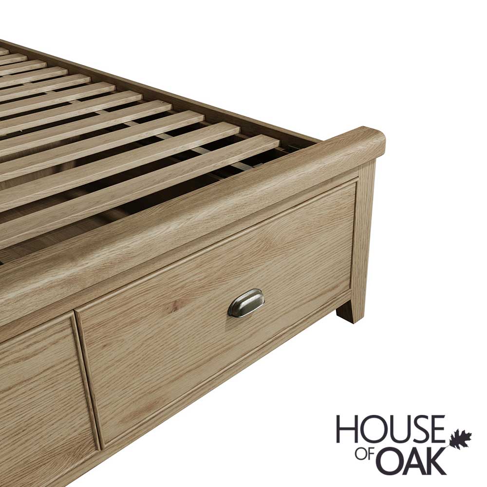 Impressive quality rund through every detail of this range, from the thick oak tops and solid proportions through to the smooth glidind soft close drawers