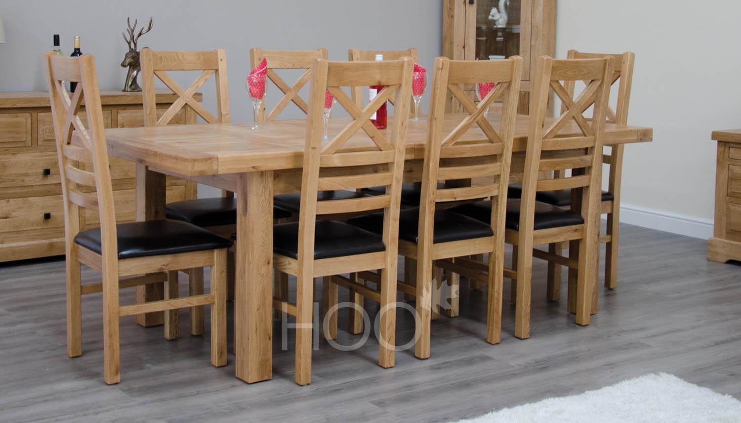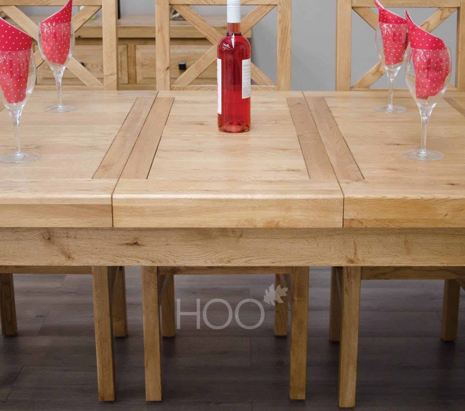 The Deluxe Oak 180cm Extending Table is the perfect family dining table, with extra space available for those unexpected dinner guests or special dinner parties. This dining table seats 6-10 diners comfortably. Each dining table has been designed to be compact in storing the extra sections, whilst still retaining its beautiful design. Don’t forget the chairs.