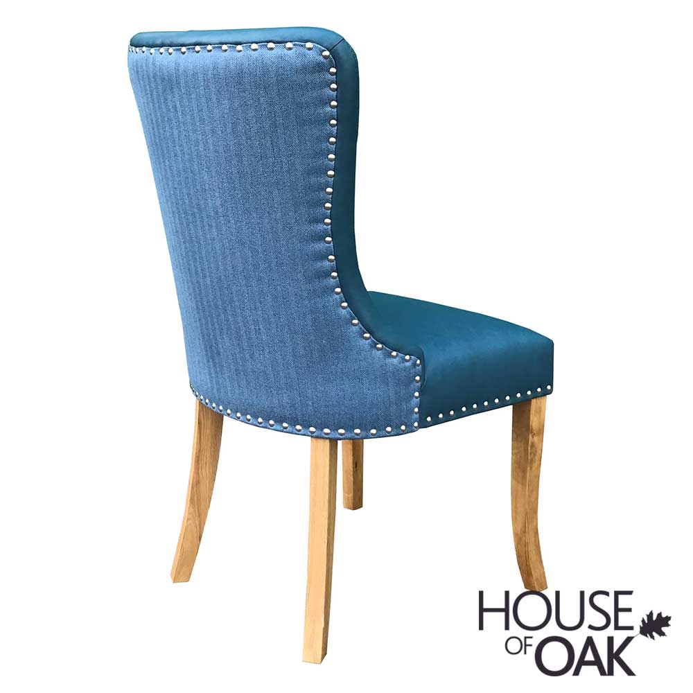 Named for the way the chairs hug you when sitting on them, The Hug Chairs are PU on the front, buttoned, and then contrast Herringbone style fabric on the back, with stud details on the edges.