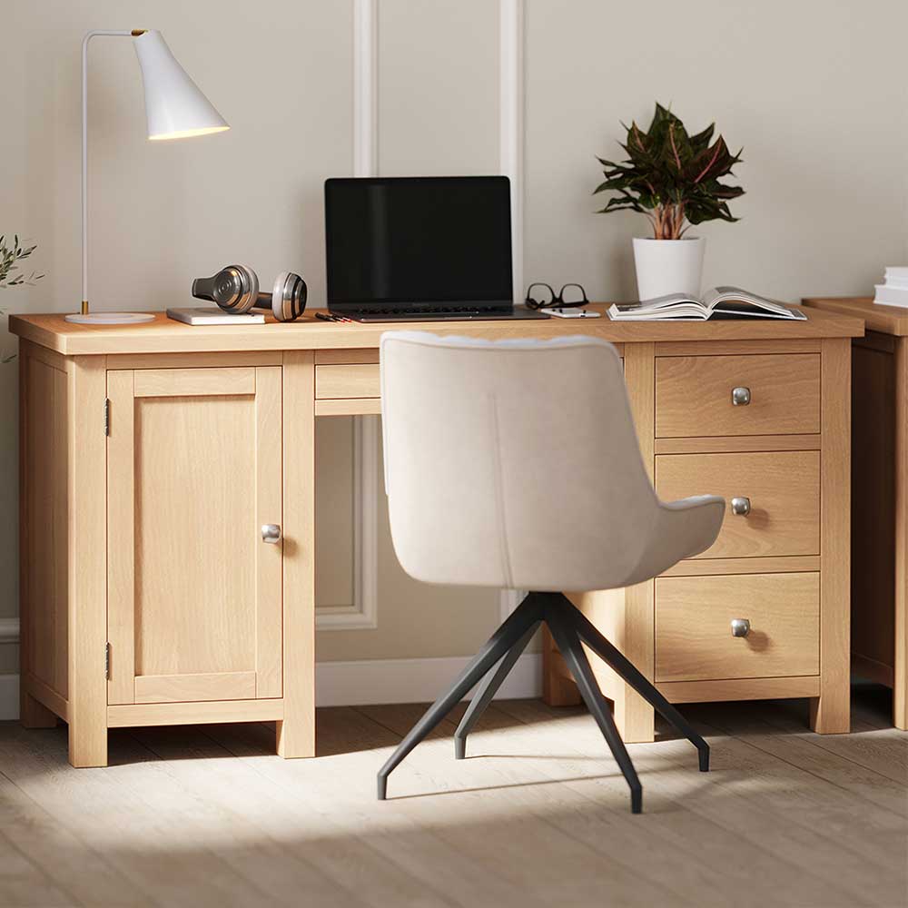 Crafted from North American White Oak this attractive eye catching collection boasts clean straight lines, stylish panels and dovetailed drawers brining warmth through natural oak tones. Enhanced by our modern square metal knob and finished in a protective light lacquer. Over 60 pieces to choose from.Available in bedroom, dining and living.