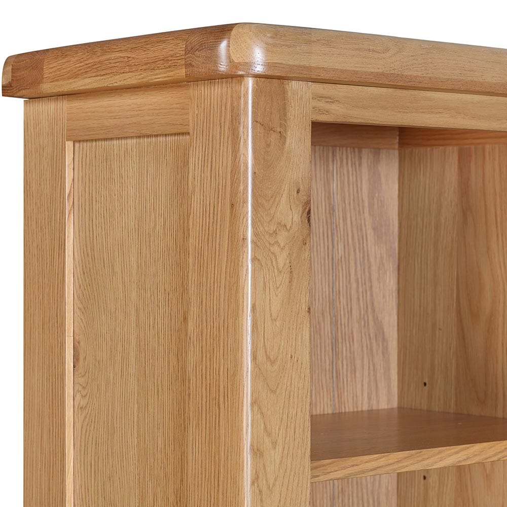 The chamfered edging and thick oak tops showcase meticulous craftsmanship, while the warm oak color adds a touch of natural beauty to any room.