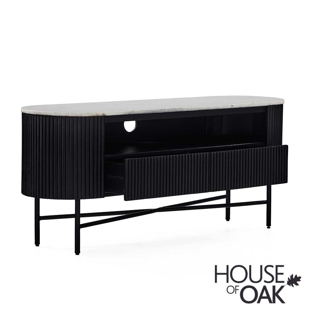Monaco in Charcoal Small Media Stand with 2 Drawers and Marble Top