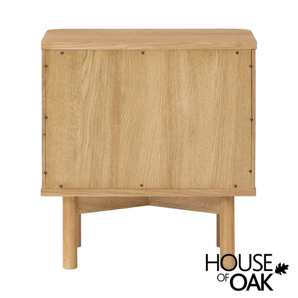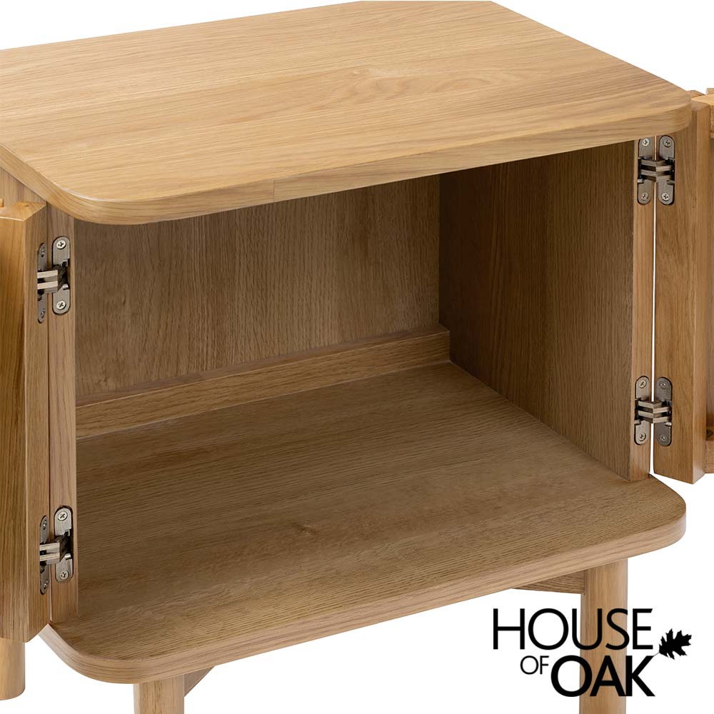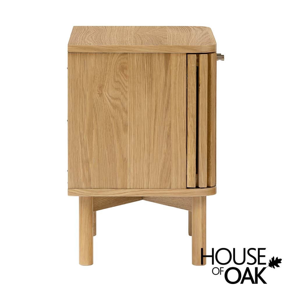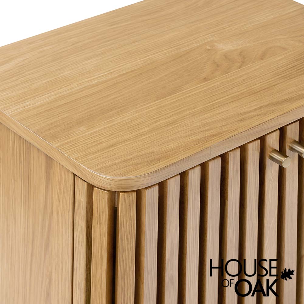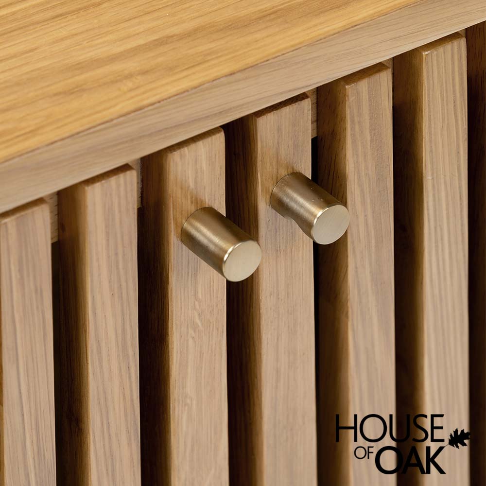 The Norfolk Oak Furniture Range with unique slatted door fronts, adorned with dainty golden handles, introduce a charming texture and distinctive aesthetic. The gracefully curved shape adds a soft and flowing elegance, instantly enhancing the ambiance of your space.