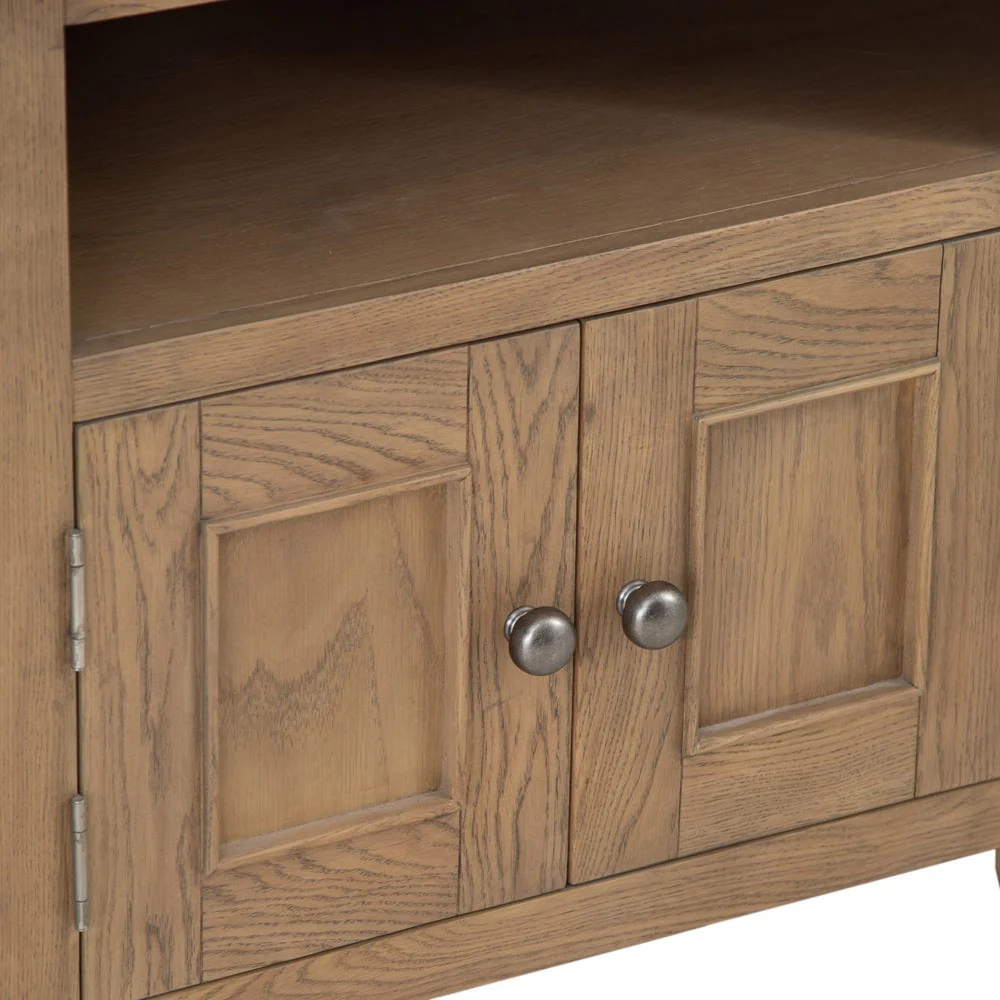 The Chatsworth Oak Corner TV Cabinet is designed to tuck neatly into the corner of your living room, making the most of your space without dominating it. The chunky oak top provides a sturdy base for your television, while the warm smoked oak finish brings a traditional farmhouse feel to your home.