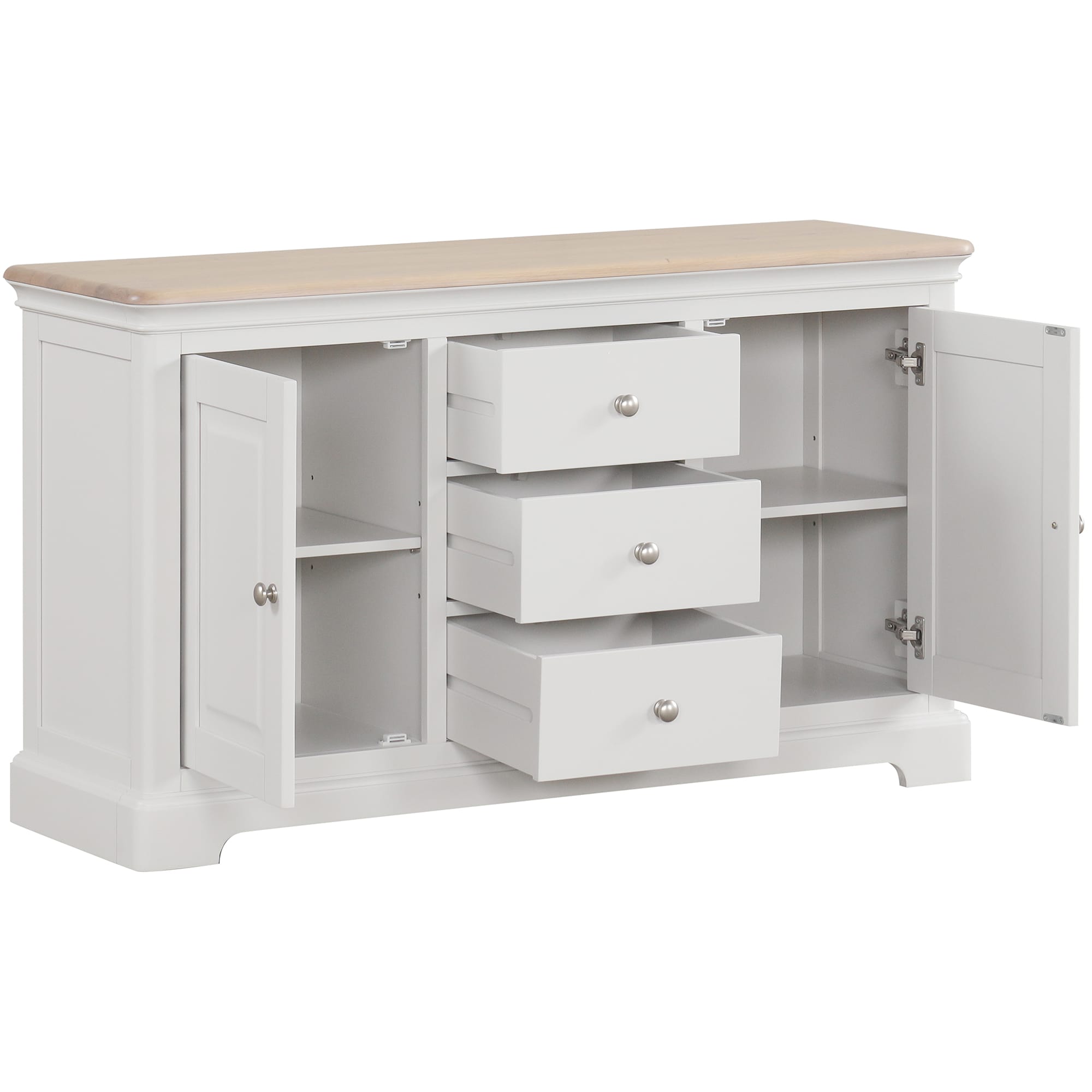 This sideboard works well as a focal point in a dining room or as part of a coordinated Cornwall Painted Oak collection. The balance of paint and oak provides a calm, timeless feel that suits both modern and country homes.