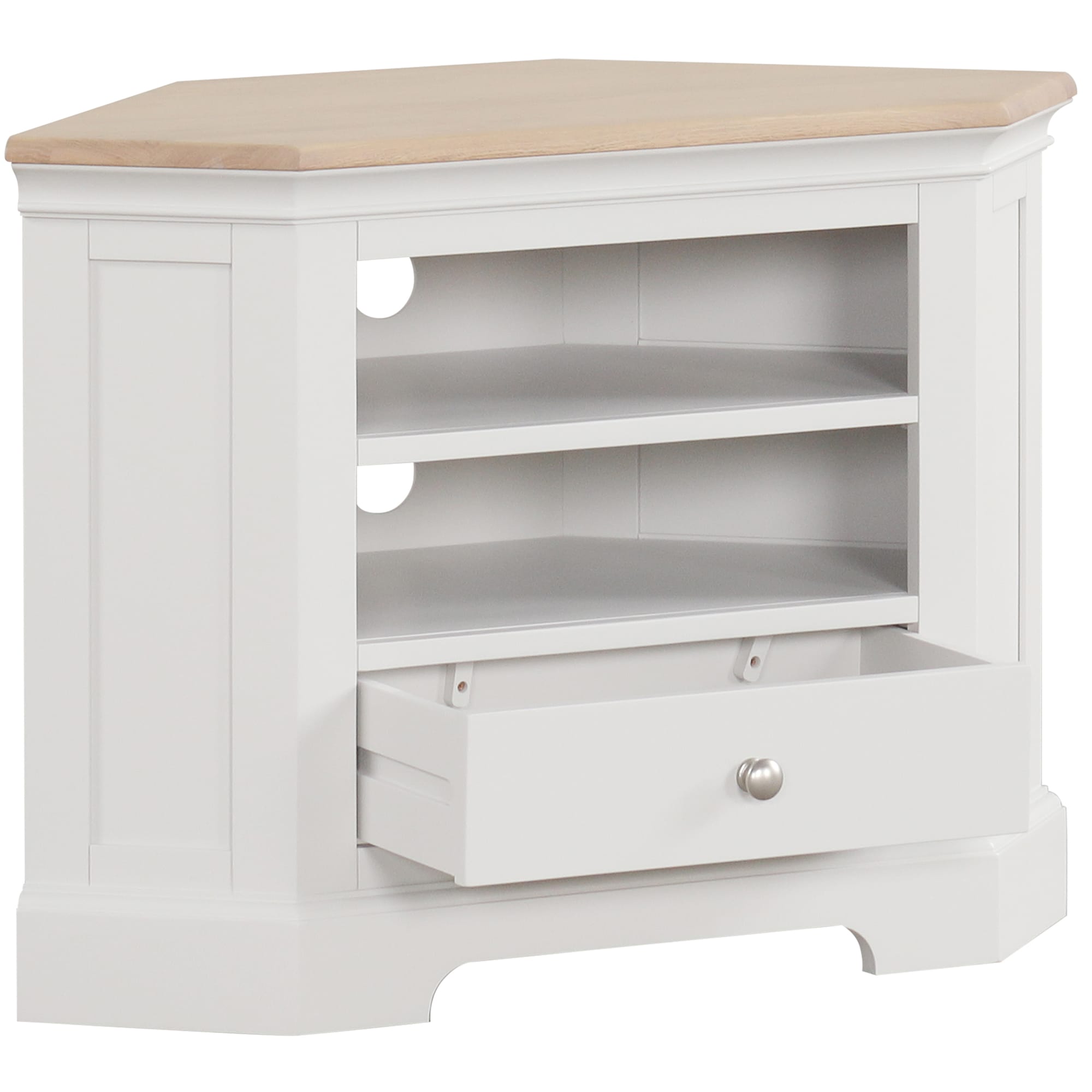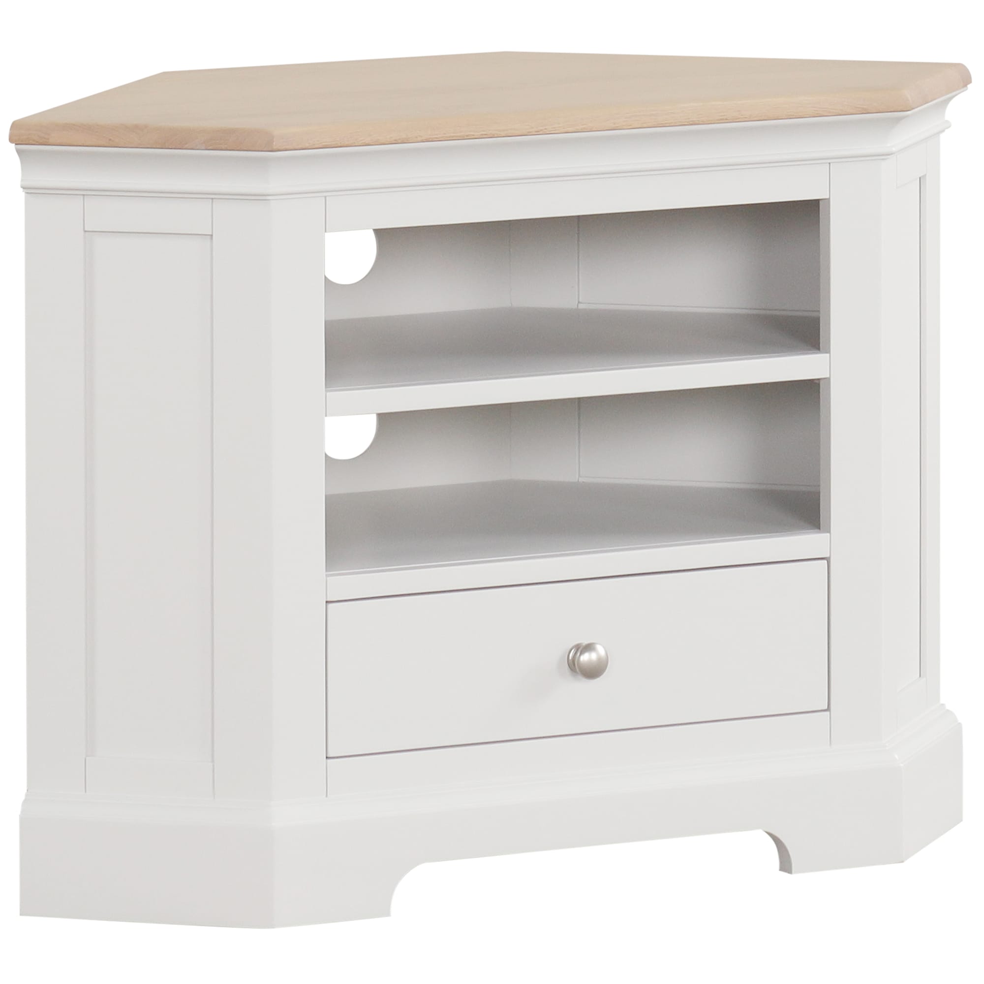 This corner model sits neatly in smaller rooms or awkward layouts where a straight TV unit may overpower the space. It fits well with both standalone pieces and full Cornwall Painted Oak living room setups.