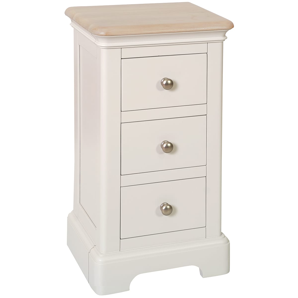The Cornwall Grey Mist Compact 3 Drawer Bedside brings all the beauty and detailing of the full-size version in a scaled-down design, perfect for smaller bedrooms, guest rooms, or tight spaces. With three practical drawers and a lightly lacquered oak top, this piece is ideal when you need functionality without compromising on style.