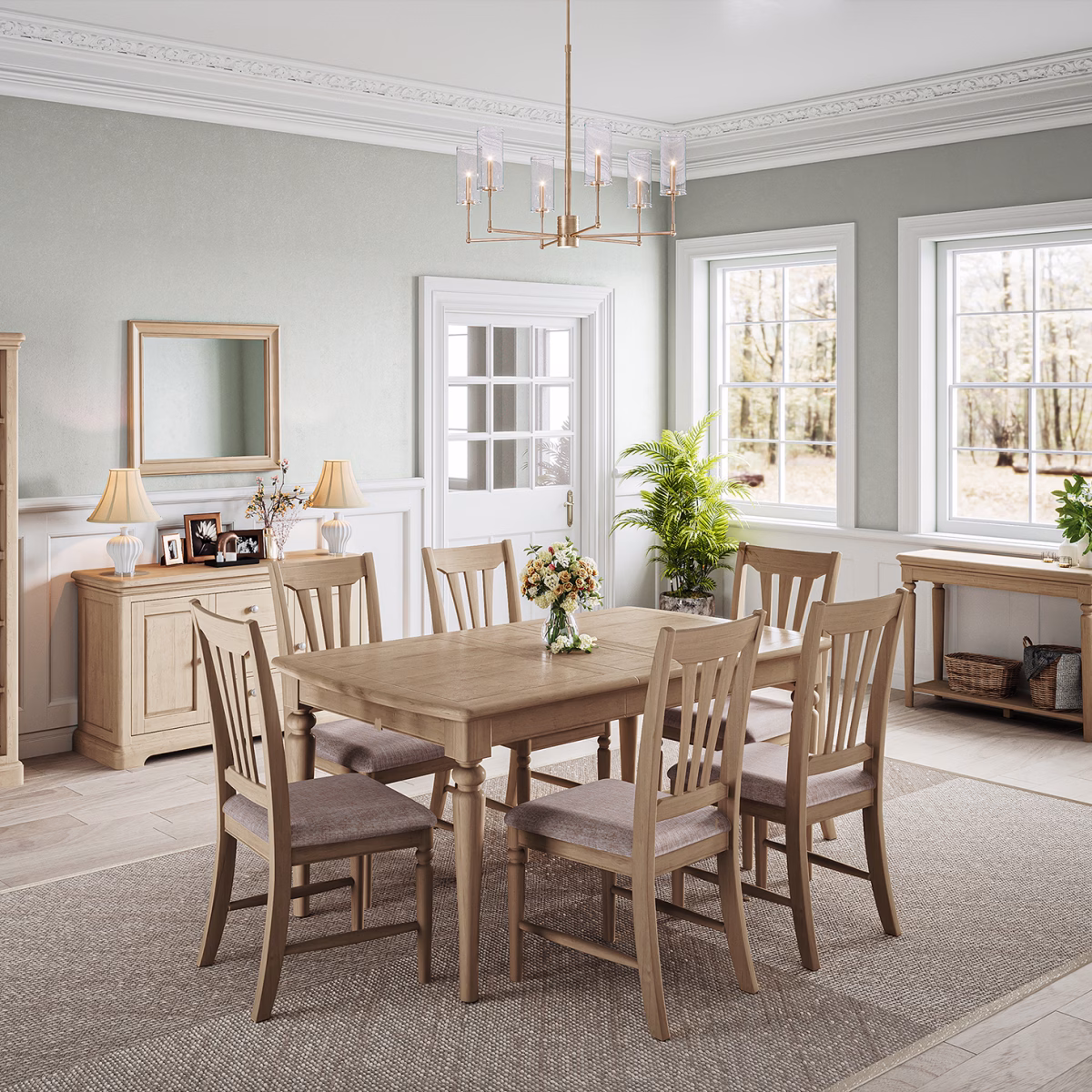 Rounded solid oak tops and delicate curves reflect the refined character of the Cornwall Oak collection, allowing this table to pair effortlessly with matching dining chairs, benches and sideboards.