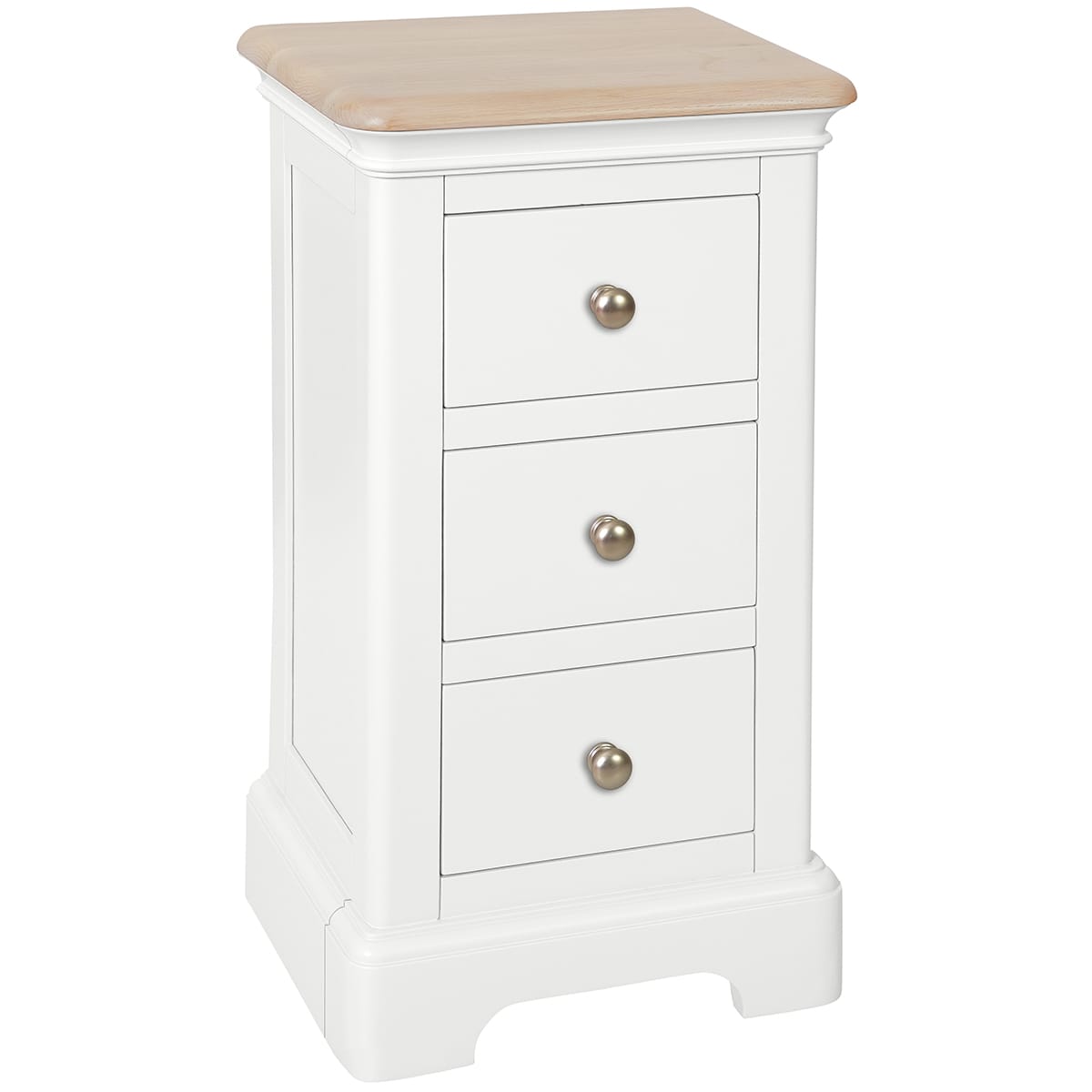 The Cornwall White Painted 3 Drawer Compact Bedside is a smaller alternative to the full size bedside, designed for rooms where space is limited. The three drawers provide useful storage for books, glasses, chargers and night time essentials, while the compact footprint allows it to sit comfortably beside most bed frames without feeling bulky.