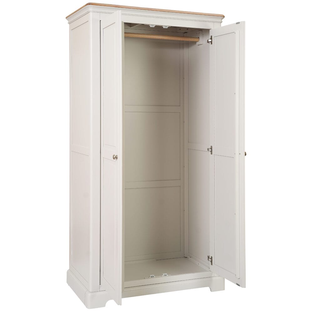 The Cornwall White Painted All Hanging Double Robe offers full height hanging space for longer garments, coats and occasionwear. It keeps clothing crease free and easy to access, with a single full length oak hanging rail fitted at the top. This makes it a good choice for wardrobes where drawer space is already covered elsewhere in the room.