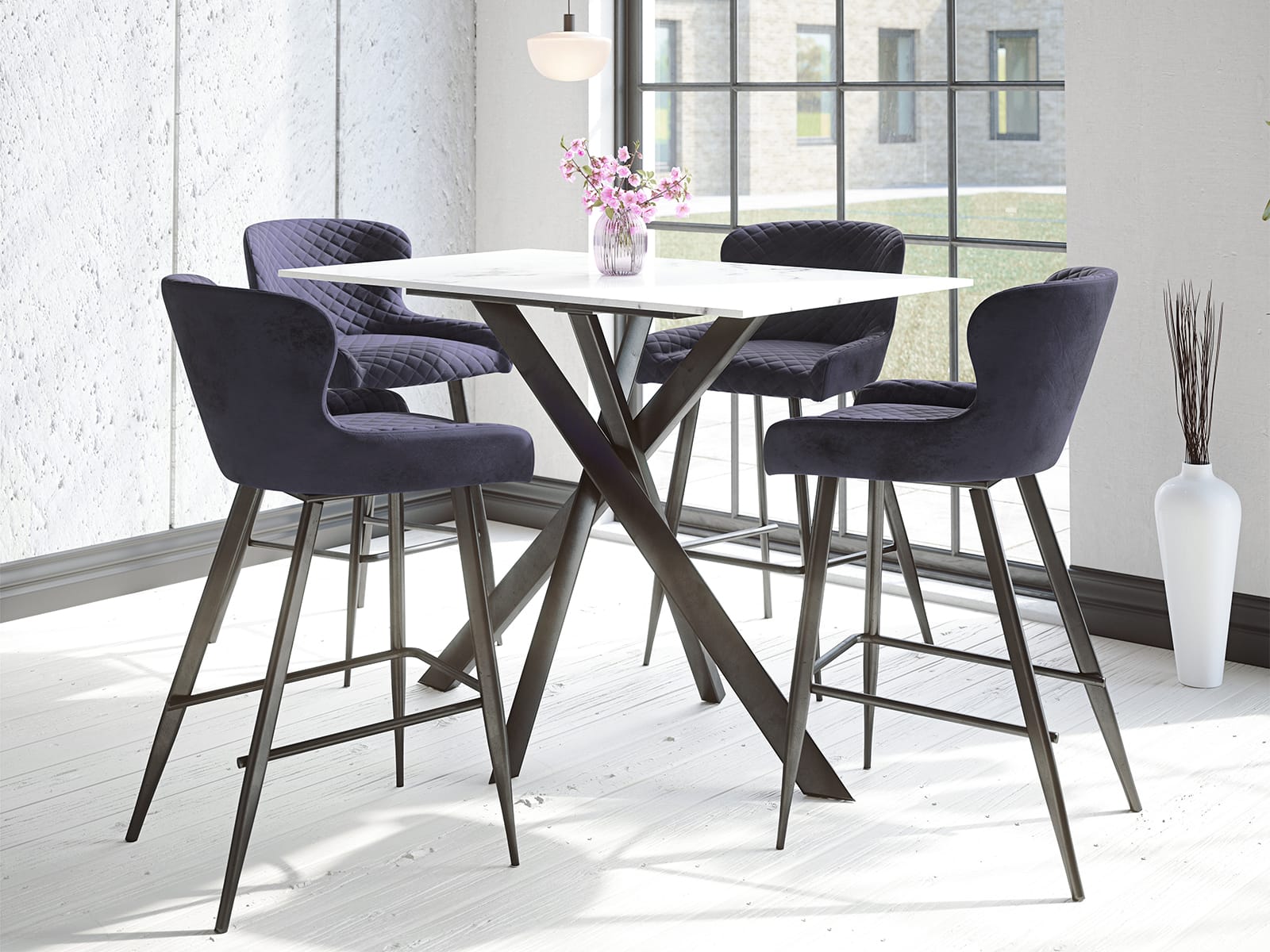 Upholstered in soft grey velvet, the stool sits on slim metal legs with a graphite grey powder-coated finish. The 69 cm seat height works well with standard height bar tables and kitchen counters. Also available in grey PU or blue velvet if you’re after a different look.