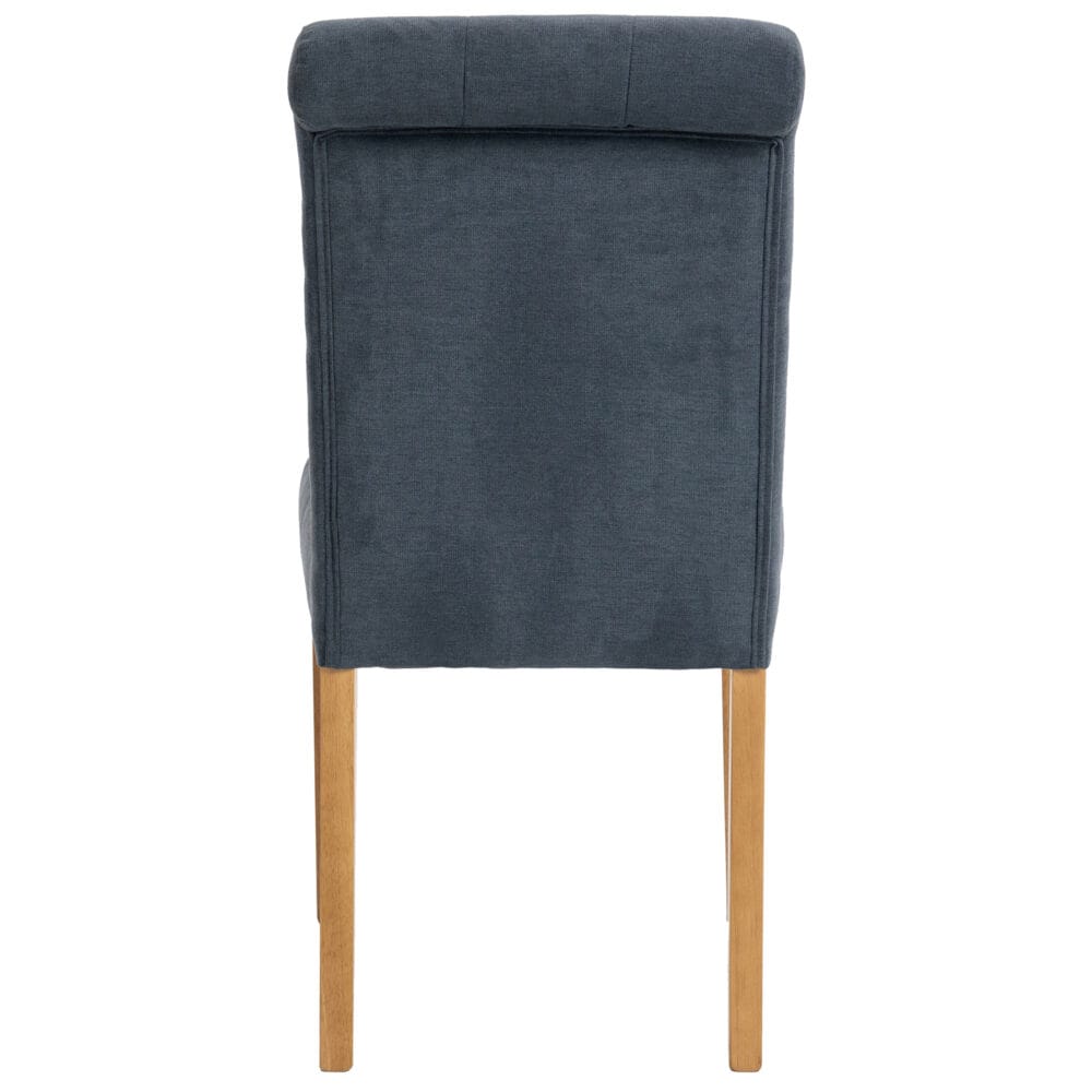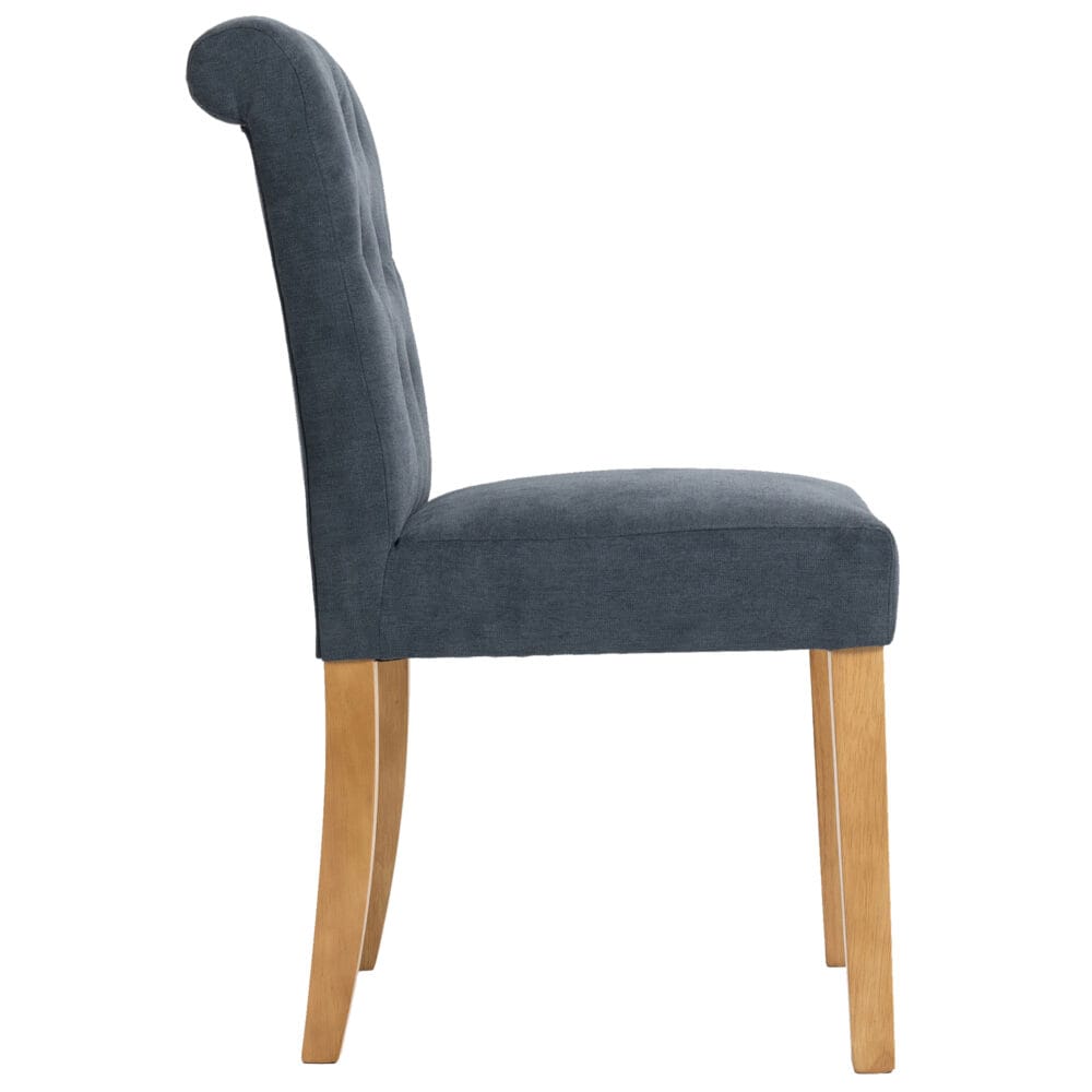 The Lily Fabric Button-backed Chair brings timeless elegance to your dining room. The classic buttoned backrest and graceful scroll-top design add a touch of sophistication to any table setting, while the generous padded seat provides lasting comfort for long meals and conversations.