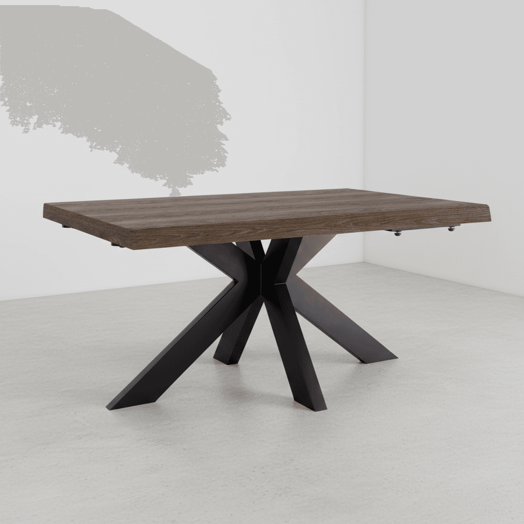 The Modena Oak Dining Table makes a statement with its striking black metal star base. The sculptural pedestal design adds visual interest while allowing comfortable seating all around with no corner legs to get in the way. Comfortably seats 4, or 6 if you’re happy to cosy up.