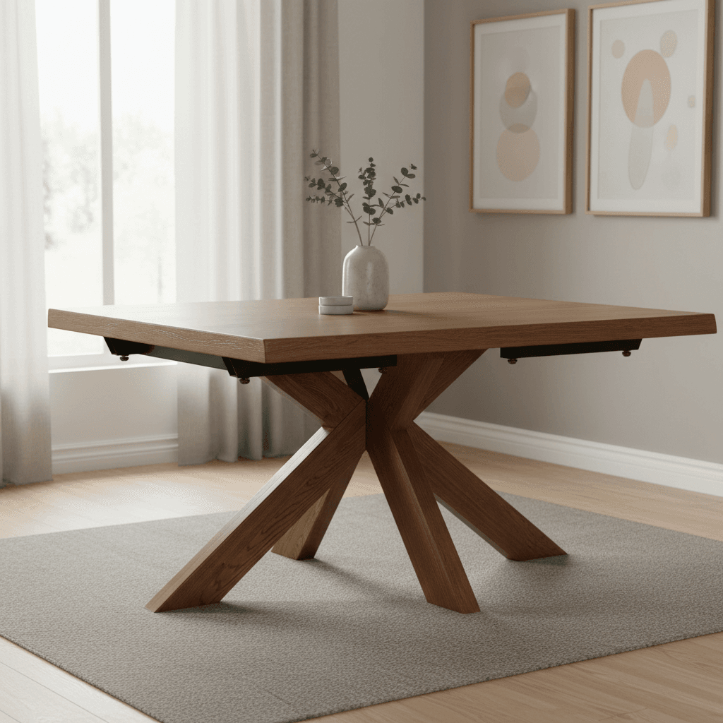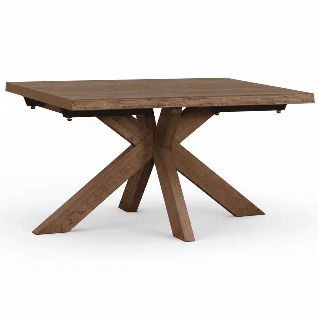 The Modena Oak Dining Table makes a statement with its striking wooden star base. The sculptural pedestal design adds visual interest while allowing comfortable seating all around with no corner legs to get in the way. Comfortably seats 4, or 6 if you’re happy to cosy up.