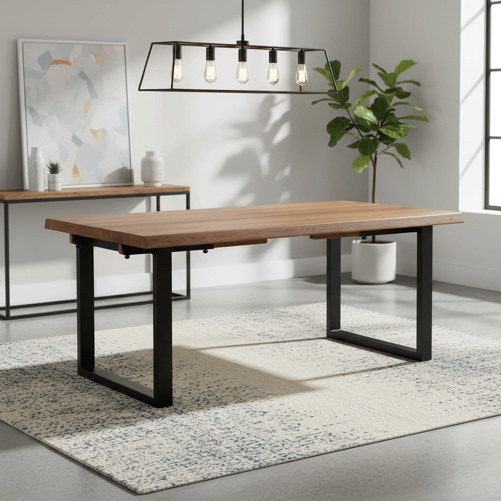 The Modena Oak Dining Table brings together the natural beauty of solid oak and the bold presence of industrial design. The oak top showcases rich grain patterns and a warm, smooth finish, while the striking black metal U-shaped base provides excellent stability and adds a modern edge.