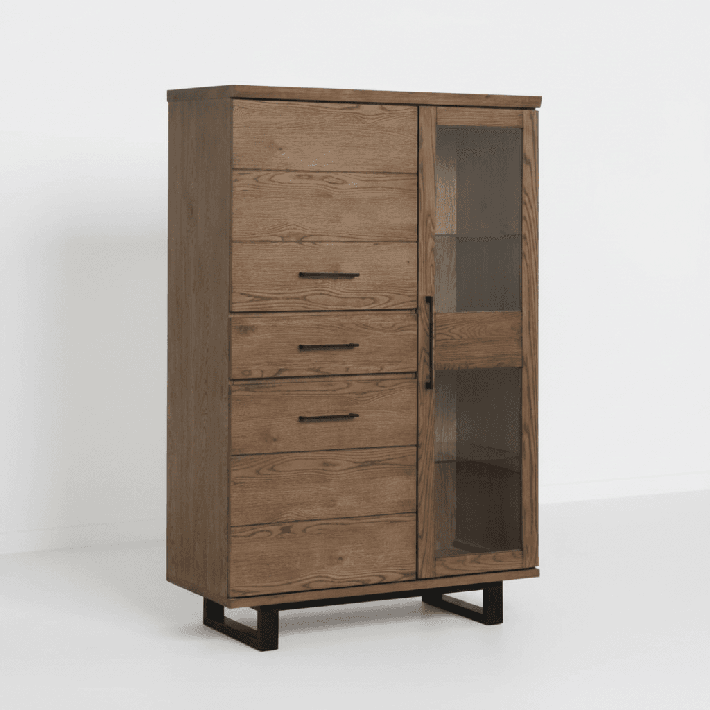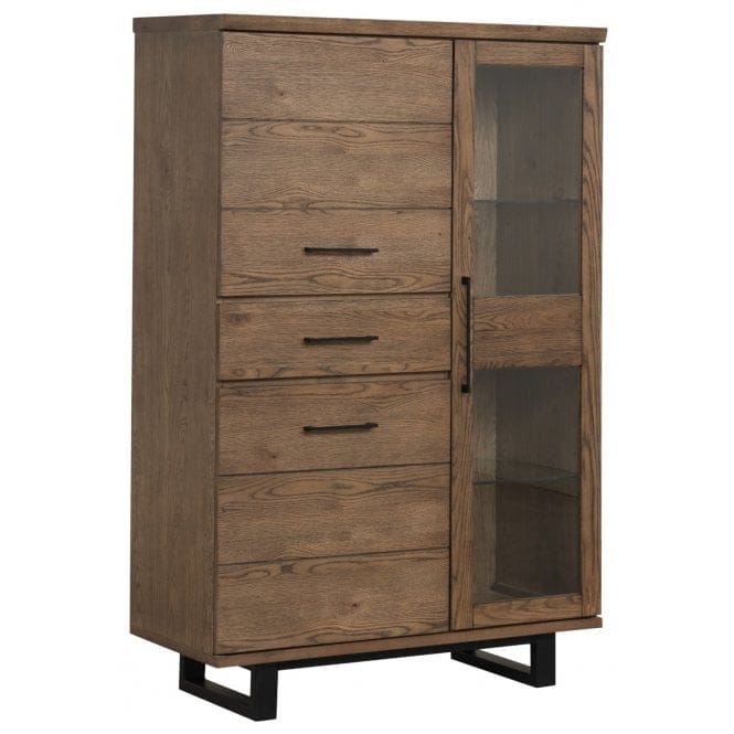 The Modena Oak Highboard offers versatile storage in a tall, slim design that makes the most of vertical space without taking over the room. Five drawers keep everyday items organised, a solid cupboard door hides bulkier pieces, and the glass-fronted display section with internal shelving lets you show off glassware or decorative items.