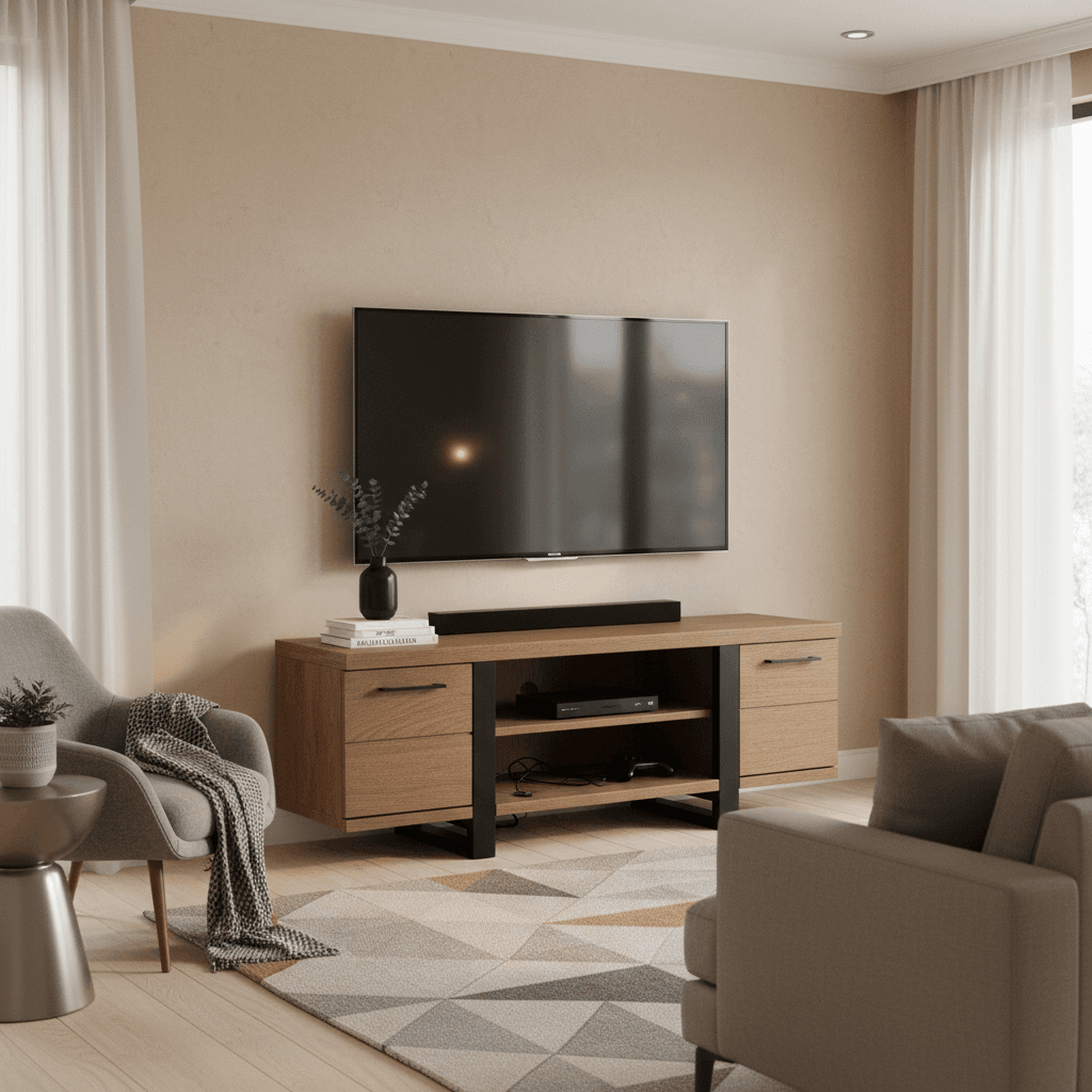 The Modena Oak TV Unit offers a practical home for your television and media devices with a modern industrial edge. Spacious shelving and storage keep boxes, consoles and remotes organised, while cable access at the back helps keep wires out of sight.