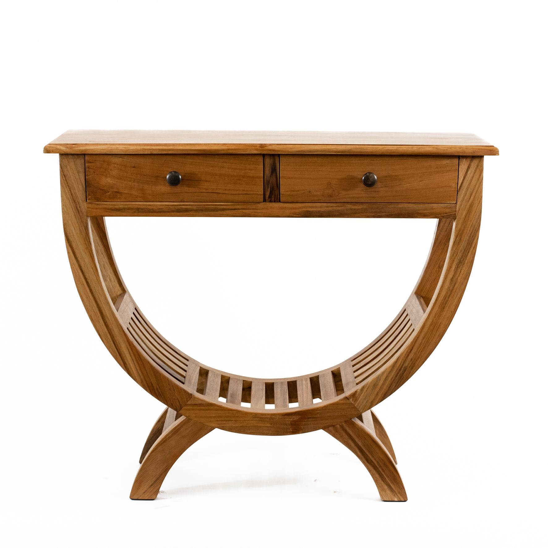 The Occasional Teak Wall Table blends sculptural timber artistry with everyday function. Expertly crafted from solid teak, each piece features a flowing, organic form and distinctive grain patterns, making it unique and bringing warmth and natural character to any hallway, living room, or entry space.