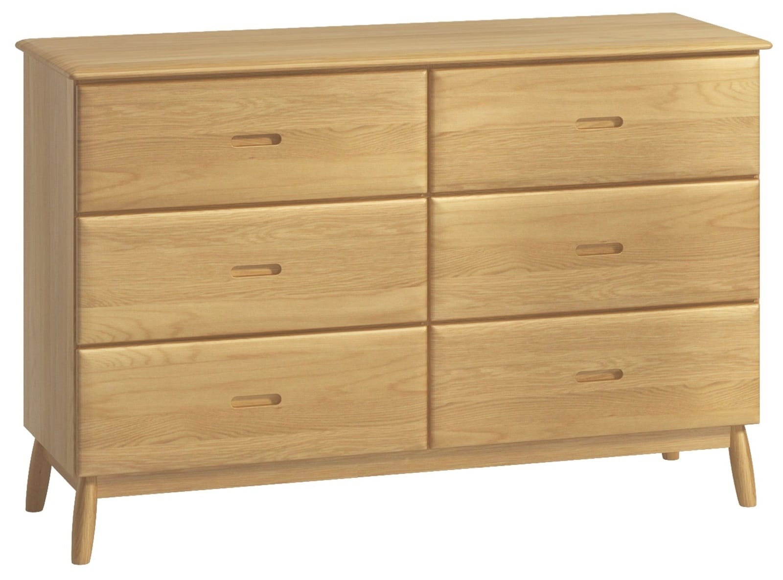 The Sophia Oak 6 Drawer Wide Chest of Drawers offers generous bedroom storage with a low, wide design. Six spacious drawers with integrated cut-out handles provide plenty of room for clothing and accessories, while the wide top surface is perfect for a TV, mirror or decorative pieces.