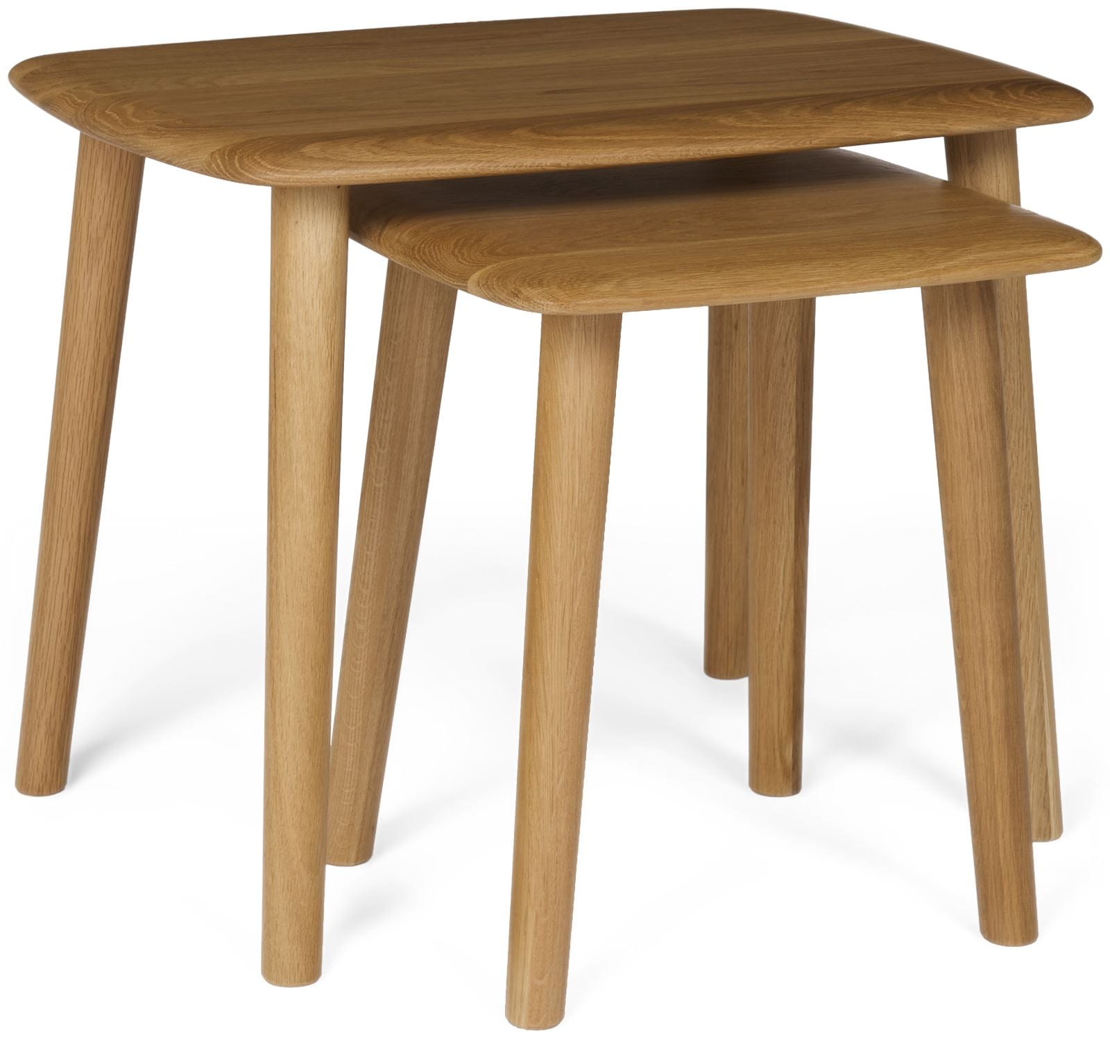 The Sophia Oak Nest of Tables offers flexible surface space for your living room. Use them together as a layered display, or separate them when you need extra surfaces for drinks and snacks. When not in use, the smaller table tucks neatly underneath to save space.