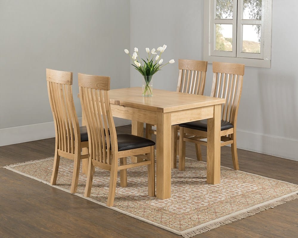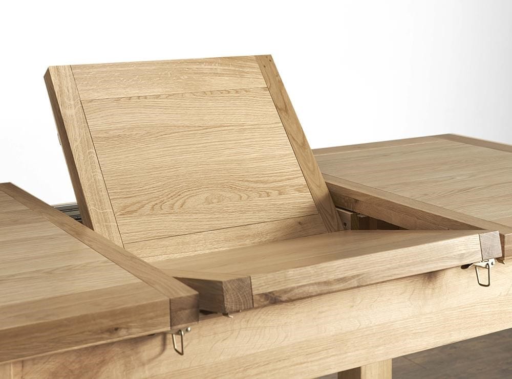 The Valencia Oak Extending Dining Table comfortably seats four for everyday meals and extends to seat six when you have guests. The built-in butterfly leaf folds neatly away inside the table when not in use, and pulls out easily when extra space is needed.