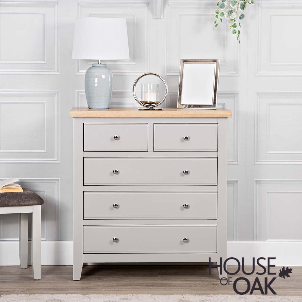 The Roma Oak Grey Painted Range with chunky contrasting gently lime-washed oak tops and chrome handles. This white painted collection blends classic and contemporary influences for a style all of its own.