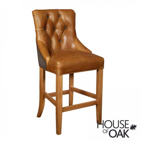Sienna Aniline Leather with Harris Tweed Bar Stool