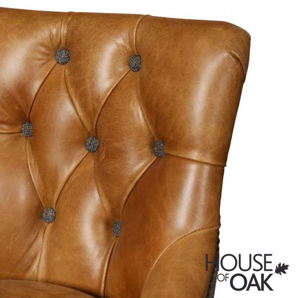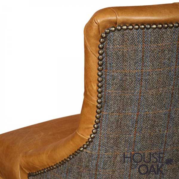 Malone Large 2 Seater in Brown Tan Leather and Hunting Lodge Harris Tweed