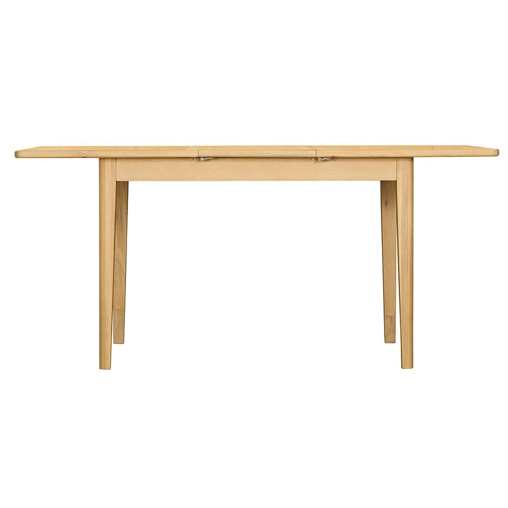 The table features a cleverly designed extending leaf, stored internally when not in use, allowing the table to seamlessly transition from a length of 125 cm to 165 cm. This versatility makes it ideal for hosting gatherings or adapting to different spaces. When closed, the table comfortably accommodates four diners, while the extended setup seats up to six, offering both functionality and style.