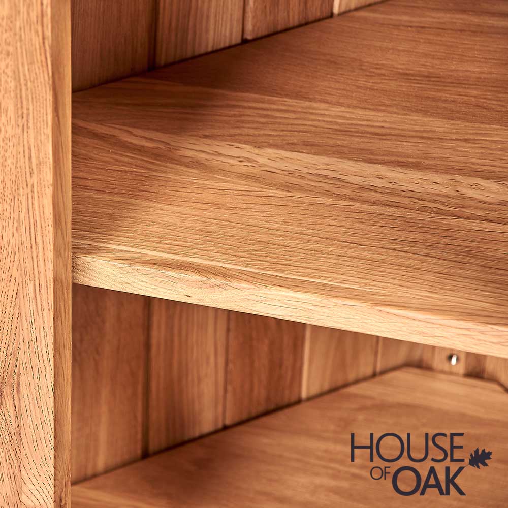 The Windsor Oak Range offers a slice of country living which is reminiscent of a traditional style. Finished by hand with a brushed oil, the effect is one of warmth and individual character as the natural grain of the oak is gently emphasised. The antique style, brass effect, drop handles add to the traditional feel of the furniture and complement the warmth of the oak. Corners are delicately rounded in keeping with the softness of the country style. There are bedroom, dining, and living pieces available in the Windsor Oak Range. Predominantly made from Solid Oak with an Engineered Panel for the Middle Insert in the Tops of the Cabinets, Dining Tables and Wardrobes. This consists of 3mm oak veneer, plywood middle section with a 3mm oak veneer underneath.
